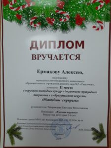 - Диплом II место регионального этапа Всероссийского (международного) фестиваля «Праздник эколят — молодых защитников природы»