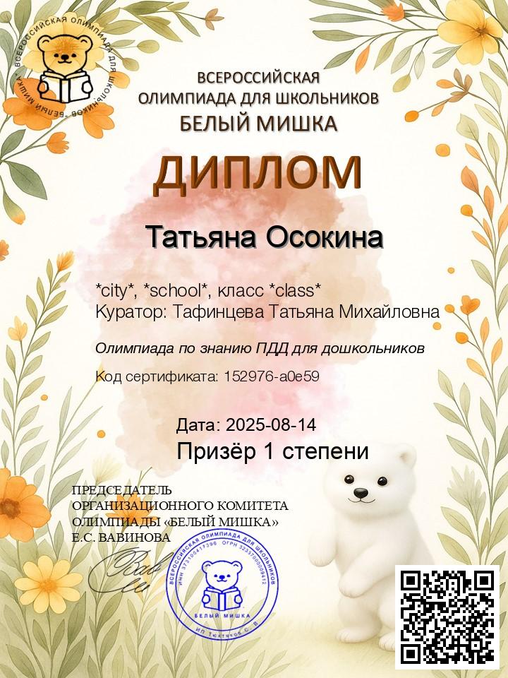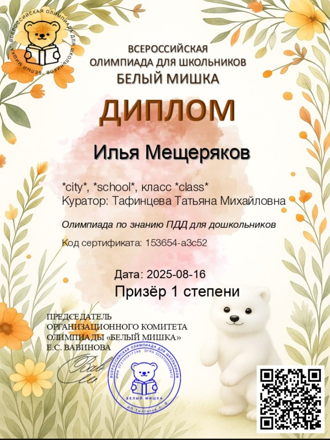 Призёры 1 степени Всероссийская олимпиада «Белый мишка»