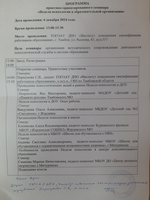 - Выступление на РМО педагогов — психологов и социальных педагогов 21.03.2024г: «Формирование толерантности в процессе межэтнического взаимодействия у дошкольников» — педагог — психолог Вандушева О.А.; «Профилактика правонарушений детей дошкольного возраста» — педагог — психолог: Харитонова С.Л.