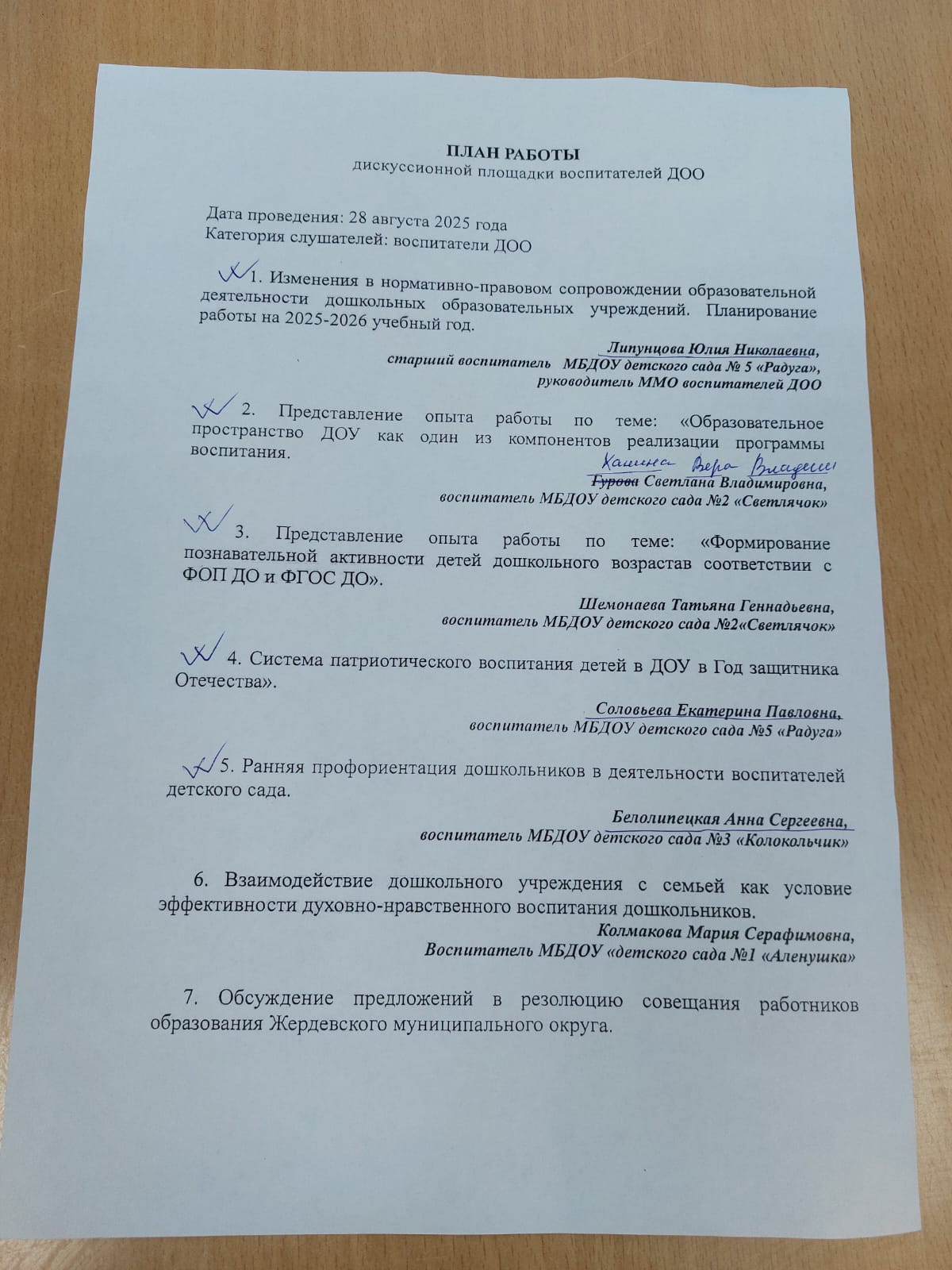 - Инструктор по физической культуре Ханина В.В., воспитатель, Шемонаева Т.Г., приняли участие в дискуссионной площадки воспитателей ДОУ, в рамках Августовской конференции «Образовательное пространство ДОУ, как один из компонентов реализации программы воспитания», «Формирование познавательной активности дете дошкольного возраста в соответствии с ФОП ДО и ФГОС ДО»